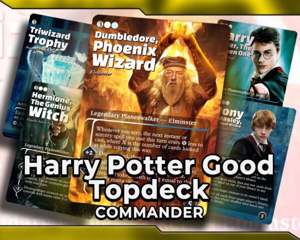 Step into the magical halls of Hogwarts with Elminster, reimagined as one of the great wizards of the Harry Potter universe. This Commander Deck focuses on the thrill of the Topdeck strategy 📚, weaving spells of knowledge and destiny to ensure that the right card always appears at the perfect time. With custom artwork inspired by the brighter side of the wizarding world, this deck celebrates courage, friendship, and magical mastery.