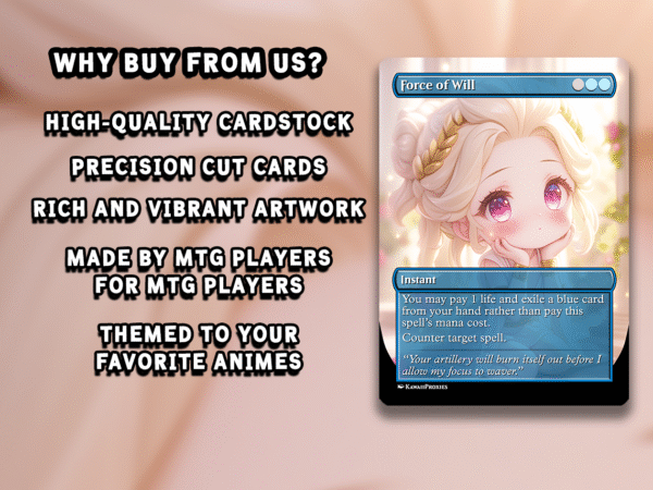 At EDHBay, we believe that everyone should have access to amazing cards without being held back by high prices. That’s why we strive to keep our cards as affordable as possible, offering some of the lowest prices on the market. And we don’t cut corners on quality—our cards are printed on premium playing paper with 2400 dpi resolution, ensuring that every card not only looks great but feels great too. No gatekeeping. Just great cards at unbeatable prices.