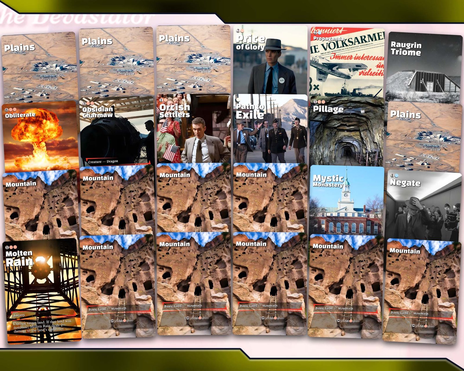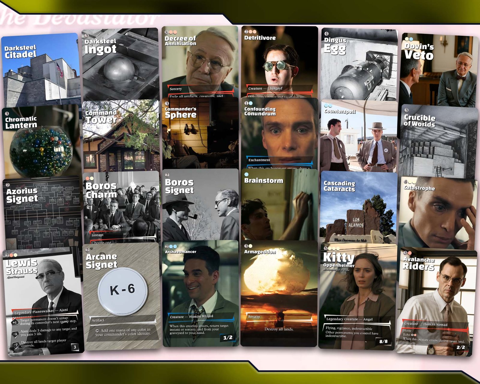 Unleash calculated devastation with Numot, the Devastator, a Commander deck inspired by Oppenheimer-level destruction where precision strikes reshape the battlefield and control comes through overwhelming force. This build focuses on strategic land destruction, heavy control elements, and powerful finishers that leave opponents struggling to recover.