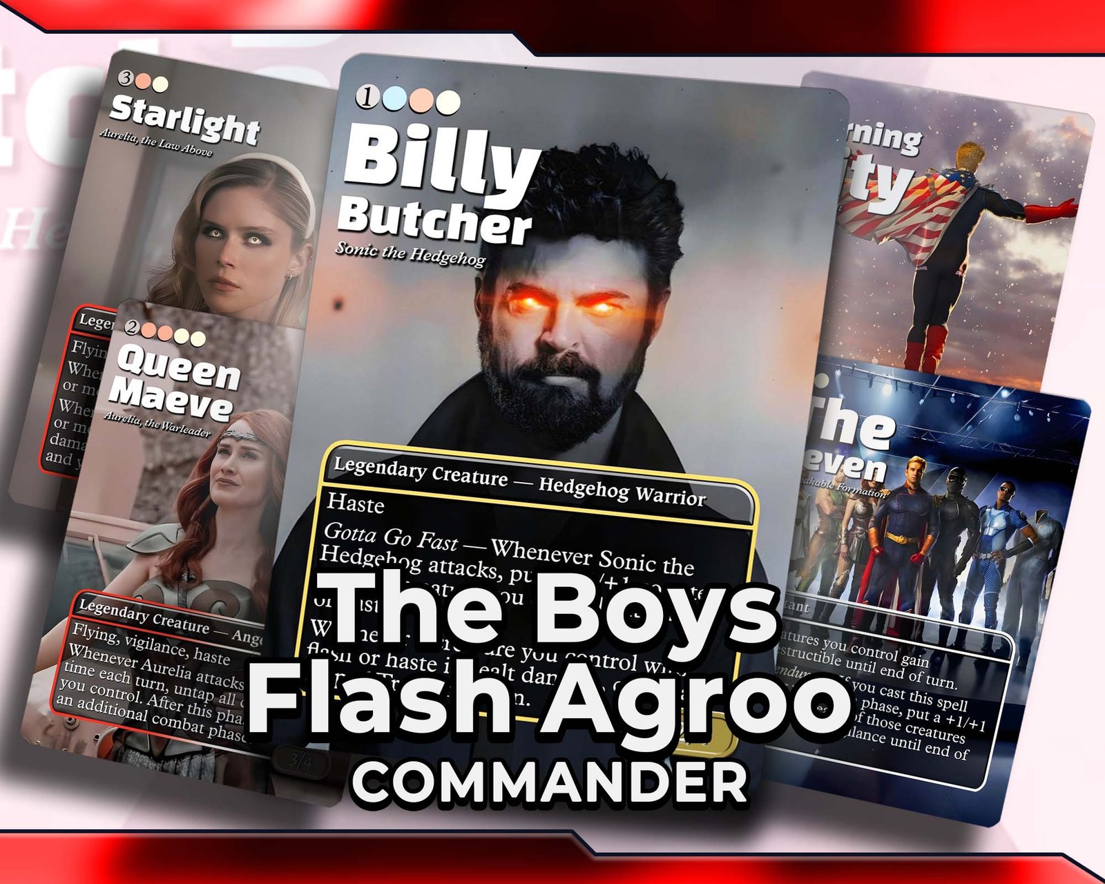 Race into the fray with Sonic the Hedgehog 🦔⚡ as your commander! This The Boys-themed Jeskai deck blends Sonic’s legendary speed with a brutal Stax strategy 🛑, slowing your enemies down while you dash ahead to victory. Every card is reimagined with The Boys flavor — twisted heroes, corporate corruption, and raw power — all fused with Sonic’s lightning-fast energy.