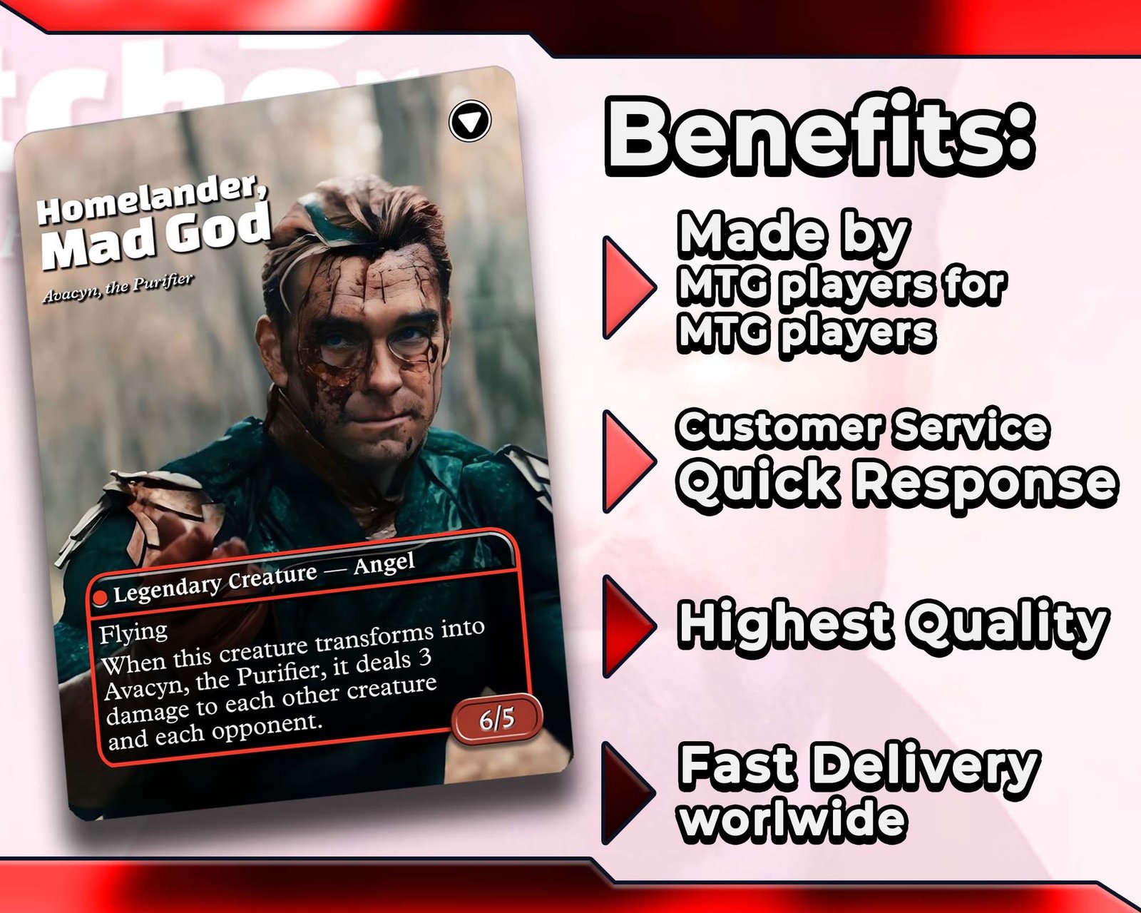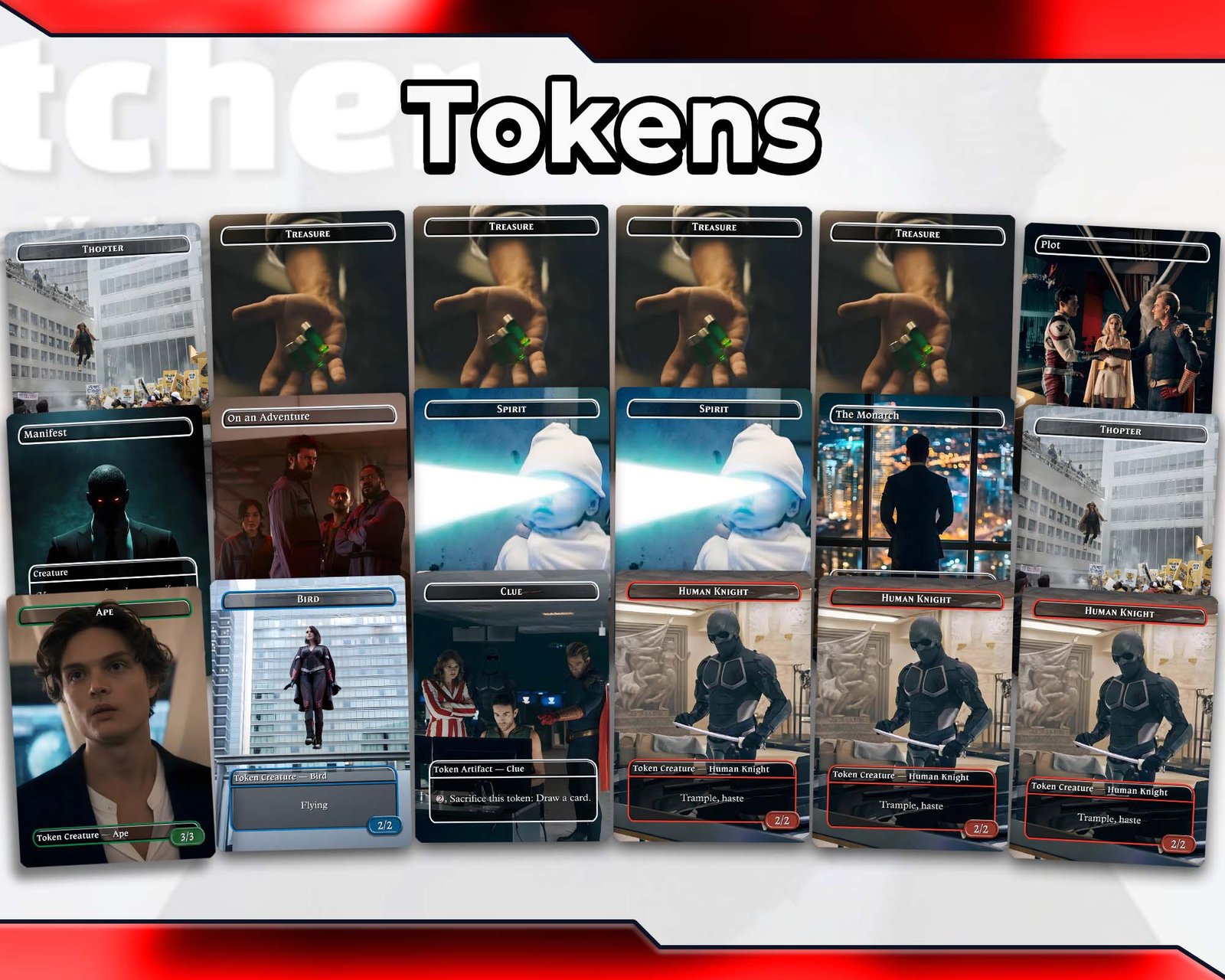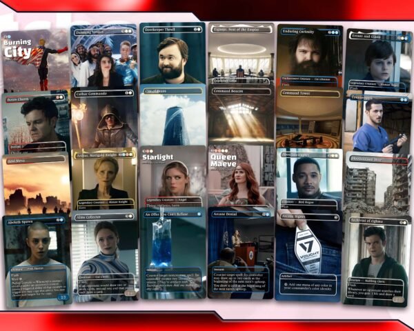 Unique Custom Artwork – every proxy card reimagined with The Boys + Sonic-inspired art.