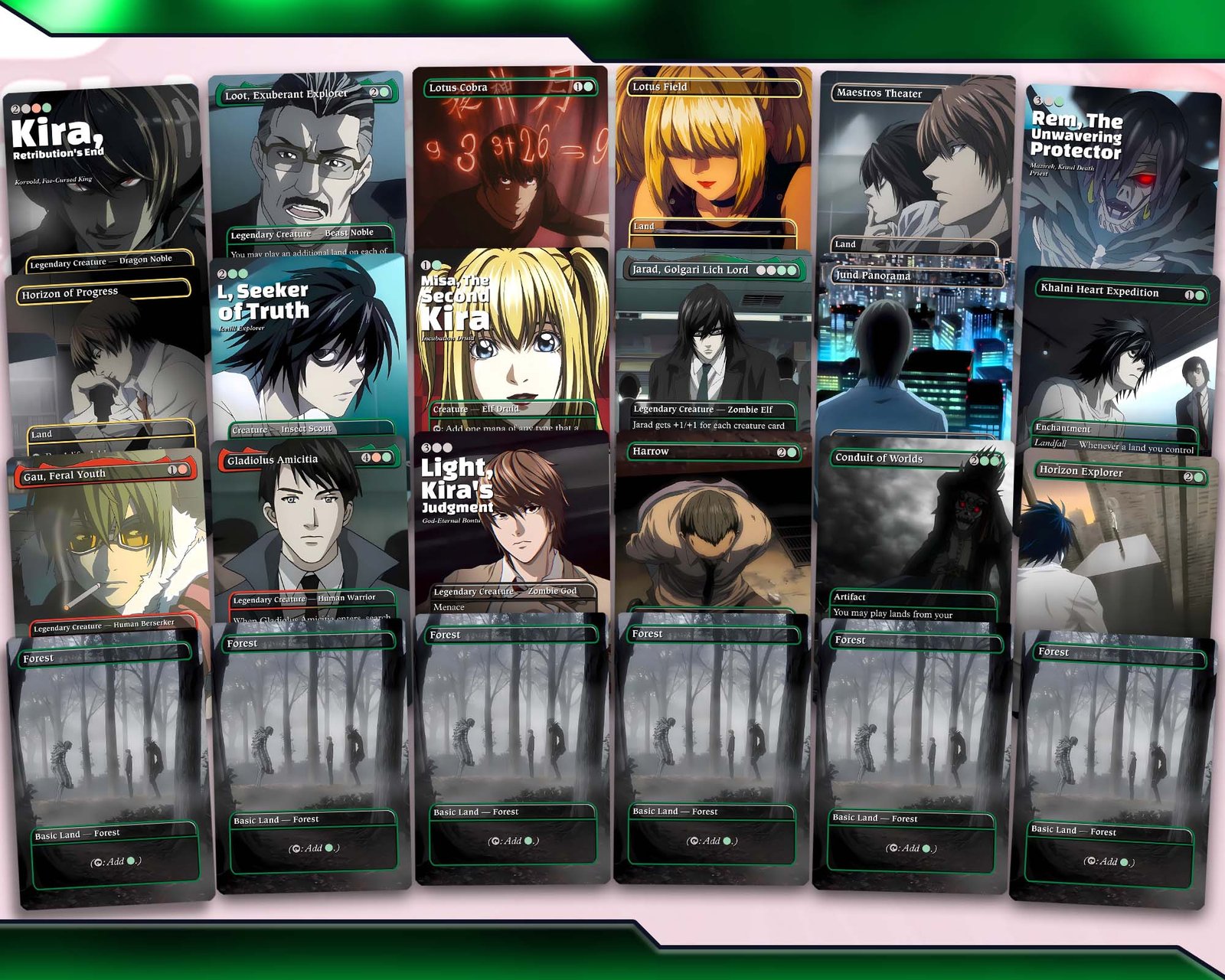 ✨ Unique Custom Artwork – every proxy card themed with Death Note–inspired visuals.