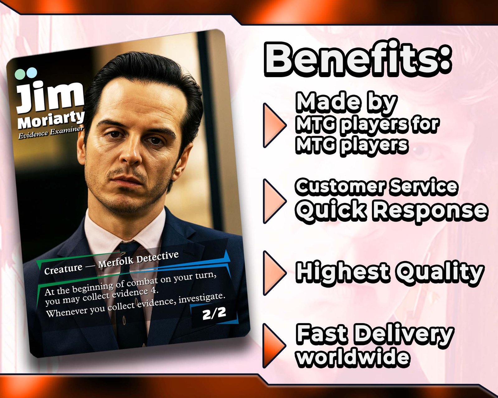 🕵️ Unique Custom Artwork – every proxy card reimagined with detective aesthetics, mysterious cases, and investigative flair