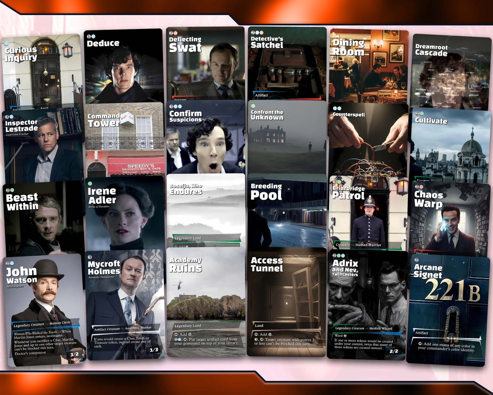 Step into a world of mystery and deduction with The Fugitive Doctor, a Commander deck inspired by Sherlock-style investigations where every clue matters and every move reveals hidden truths. This build revolves around clue generation, clever resource management, and strategic value plays that slowly outsmart and outmaneuver opponents.