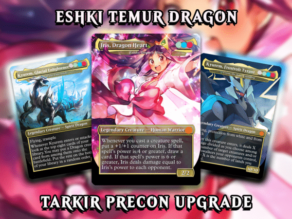 Unleash your inner Pokémon Trainer with Dragon Heart Iris, an exclusive custom EDH deck from Cardboard Mechanics! This unique build reimagines Eshki, Temur’s Roar (from Tarkir Dragonstorm) as the legendary Pokémon Dragon-type trainer Iris, with Pokémon-inspired artwork featured throughout the deck.