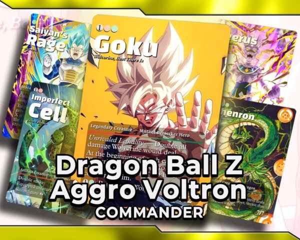 Harness the fury of Wolverine, Best There Is, reimagined through the explosive power of Dragon Ball Z. This Commander Deck thrives on the Voltron strategy ⚔️, stacking equipment, auras, and combat buffs onto your commander until they become a one-man army — like a Super Saiyan tearing through the battlefield. Paired with an Aggro gameplan, this build strikes fast, hits hard, and refuses to back down.