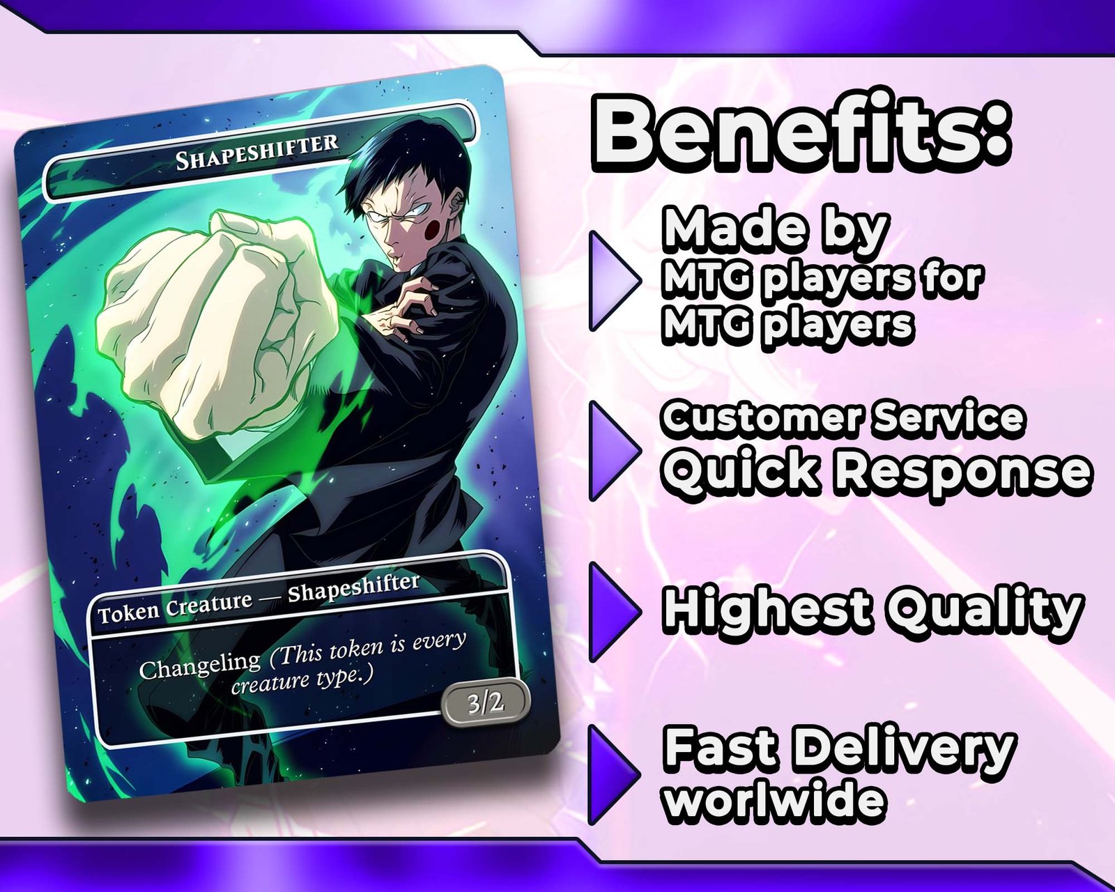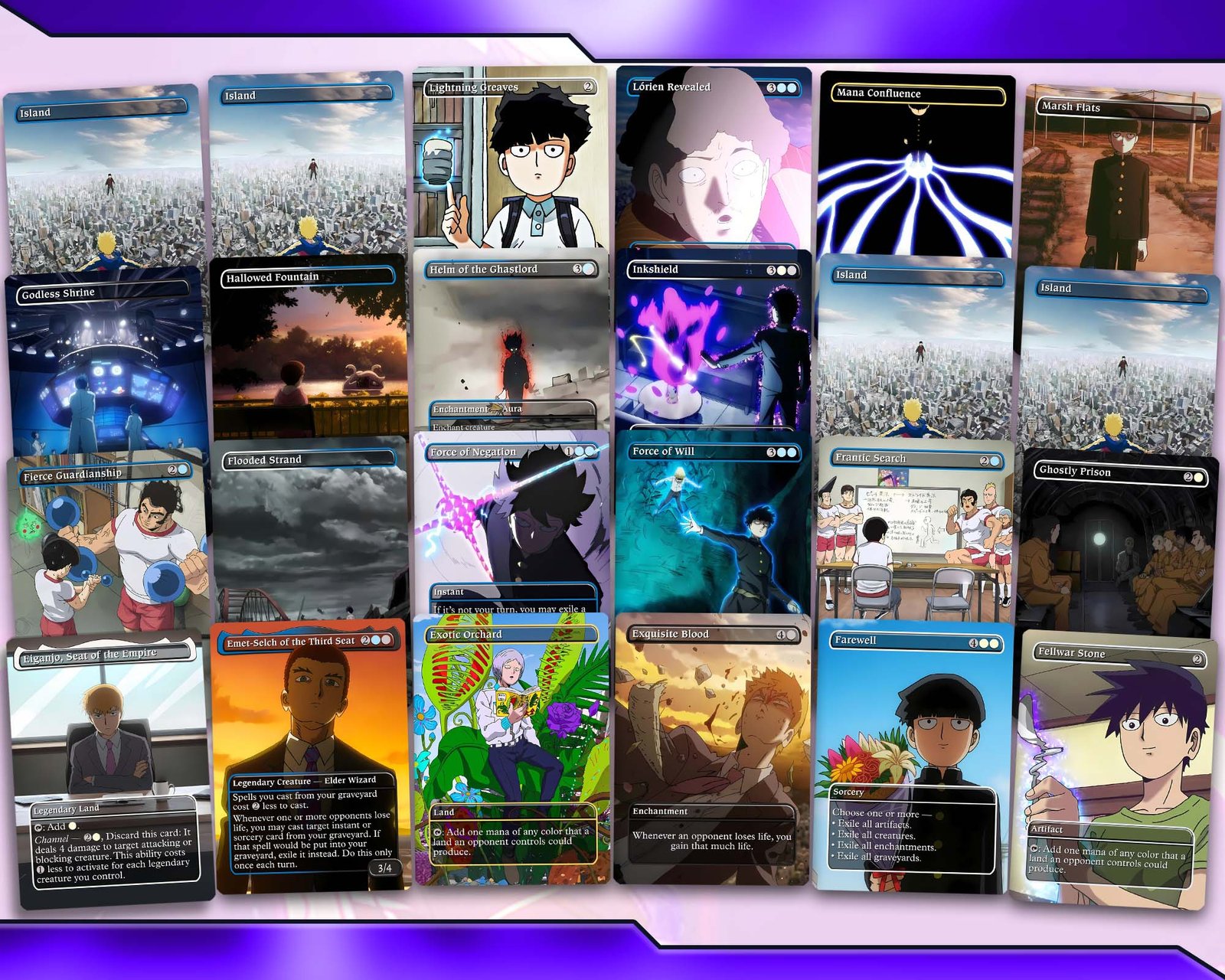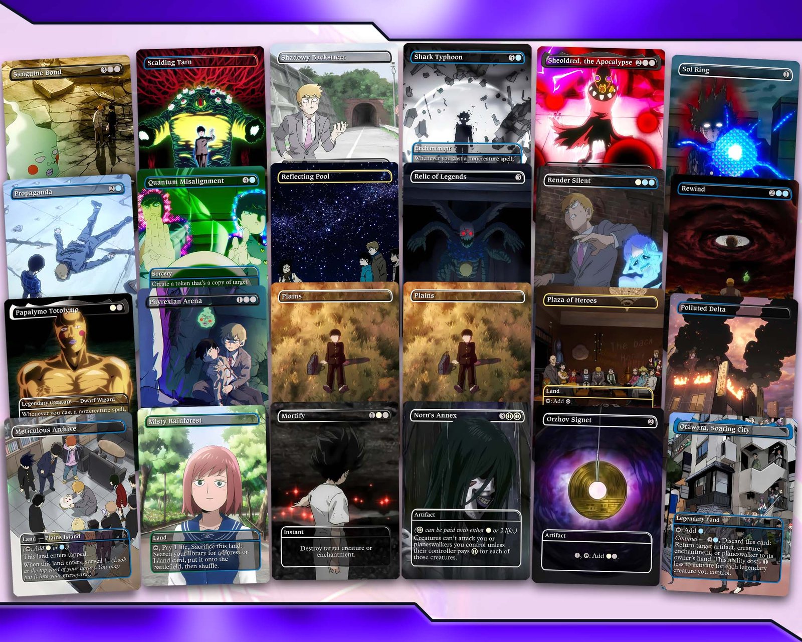 ✨ Unique Custom Artwork – every proxy card reimagined with Mob Psycho 100–inspired designs.